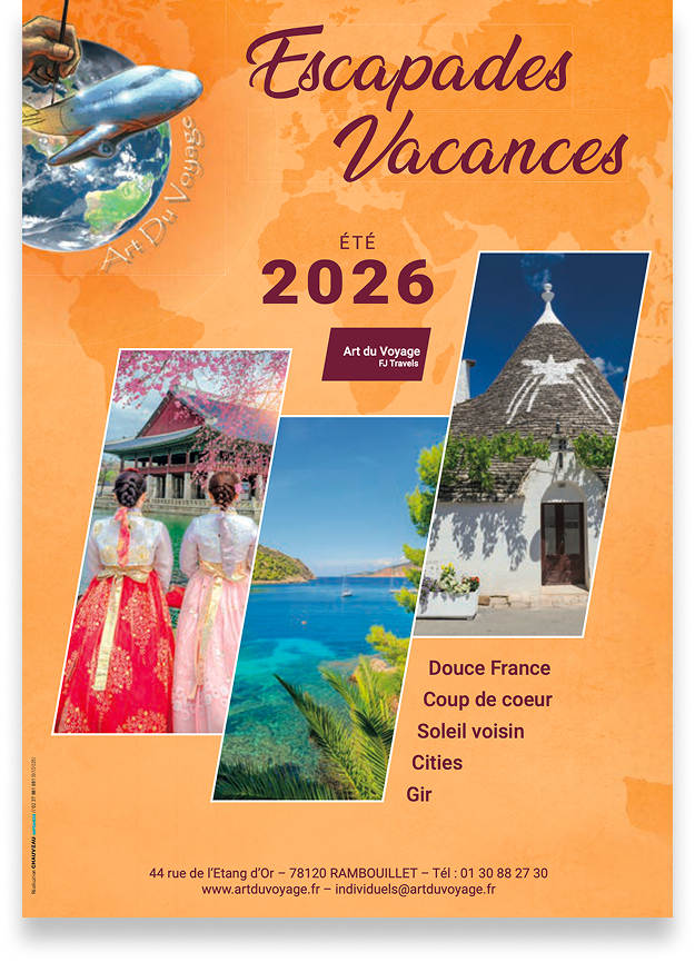 Qu’il s’agisse de séjours pour vos adhérents, de circuits en toute liberté ou d’un voyage de groupe sur-mesure, Art du Voyage conçoit chaque programme avec la même exigence : vous offrir une expérience inoubliable, au plus près de vos attentes.